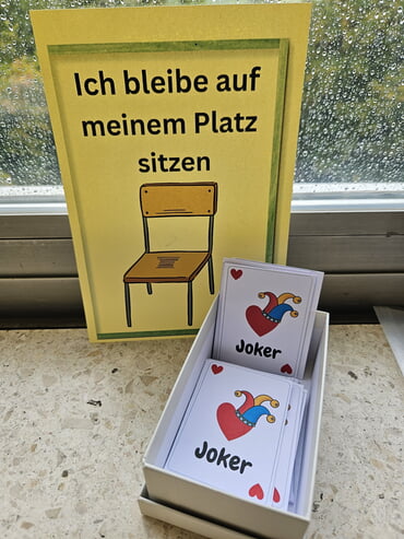 Möchte ein Kind etwas davon tun, legt es still eine Jokerkarte in die Jokerbox und erledigt dann sein Anliegen – kommentarlos, ohne die Stunde zu unterbrechen.